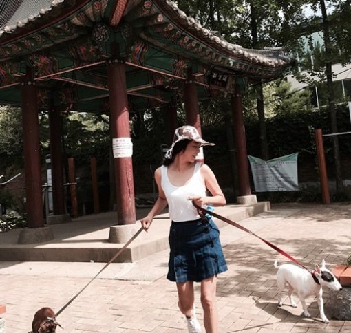 사진 속 이혜영은 애견 초코, 부부리와 산책 중이다. 이혜영은 민소매와 스커트, 운동화로 편한 차림을 하고 있다. 편한 차림에도 숨길 수 없는 그녀의 늘씬한 몸매가 시선을 모은다.