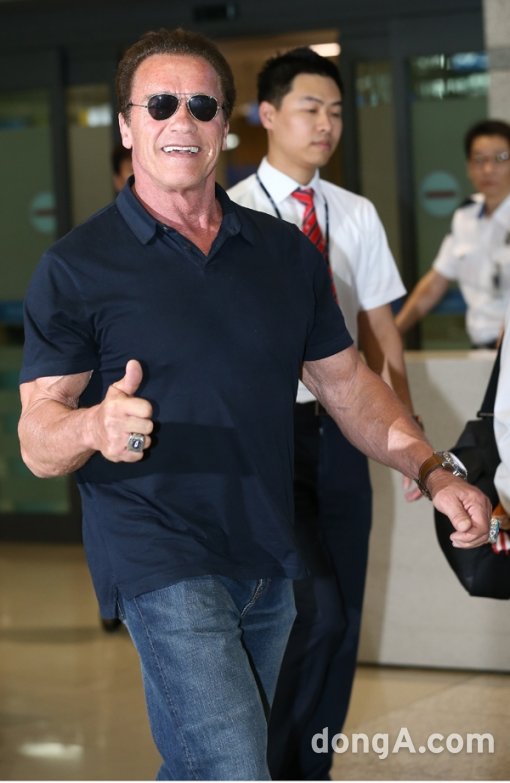 할리우드 스타 아놀드 슈왈제네거가 1일 오후 영화 ‘터미네이터 제니시스’ 홍보를 위해 인천국제공항을 통해 내한했다.