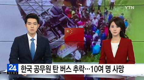 추락한 버스에는 공무원 교육생 24명과 연수원 직원 1명, 가이드 1명 등 우리 국민 26명과 중국인 2명이 타고 있었다.