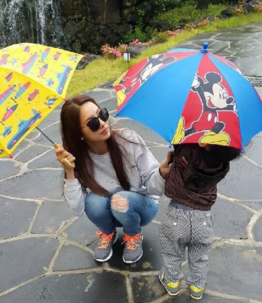 공개된 사진 속 한채영은 비가 오는 거리에서 우산을 쓰고 있는 아들을 바라보고 있다. 티셔츠에 청바지만 입었을 뿐인데 한채영의 미모가 돋보여 시선을 모은다.