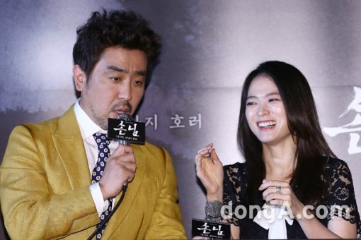 배우 류승룡(왼쪽), 천우희가 2일 오후 서울시 성동구 왕십리CGV에서 열린 영화 ‘손님’ 언론시사회에 참석해 기자간담회를 하고 있다.