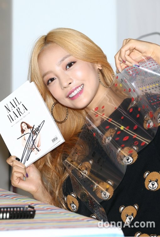 카라의 멤버 구하라가 3일 오후 서울시 강남구 코엑스몰 영풍문고에서 열린 첫 에세이집 ‘네일 하라’ 발간 기념 팬사인회에서 포토타임을 하고 있다.