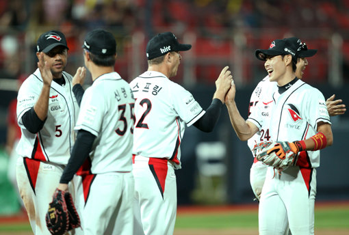 kt는 이처럼 6월 이후 5일까지 승률 0.536(15승13패)으로 리그 판도를 뒤흔들고 있다. 그럼에도 6월 21일 용덕한을 NC로 보내고 오정복을 데려와 전력보강의 속도를 줄이지 않았다. 수준급 외국인투수 저스틴 저마노까지 영입했다. 팀의 가장 약점인 선발진에서 힘을 보탤 예정이다. kt의 질주에 가속도가 붙을 것으로 기대된다.