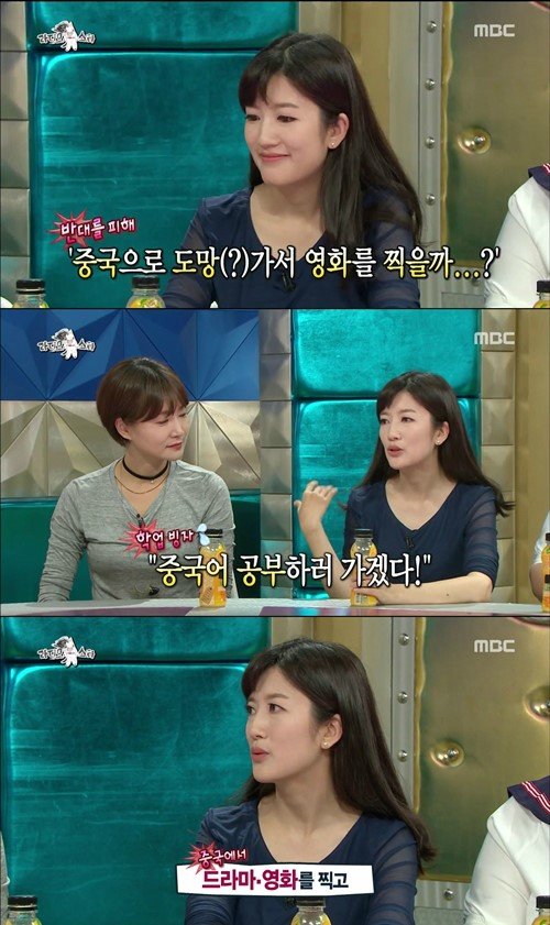 ‘라디오스타’에 출연한 배우 장소연이 연기를 하기 위해 중국으로 도망간 적이 있다고 밝혀 화제다.