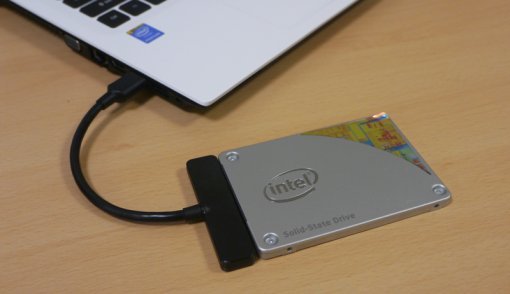 <SATA-USB 변환 케이블이나 외장하드 케이스를 이용, 노트북에 SSD를 연결해 마이그레이션이 가능하다>