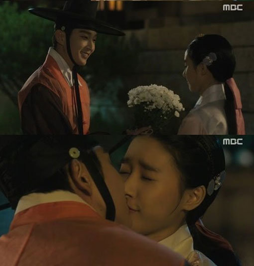 8일 첫방송된 MBC 새 수목미니시리즈 ‘밤을 걷는 선비’(극본 장현주/연출 이성준/이하 ‘밤선비’)에서는 입을 맞추는 김성열(이준기 분)과 명희(김소은 분)의 달달한 모습이 공개됐다.