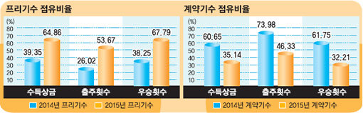 ● 올 프리기수 15명, 작년보다 2배…우승횟수 등 향상