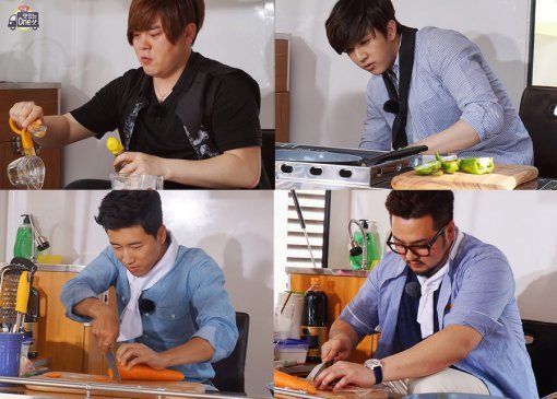 사진 속에는 문희준, 천둥, 이진곤 셰프와 김태우, 장수원, 박준우 셰프가 각각 팀을 이루고 있는 모습이다. 계량을 하고, 가스불을 켜고, 썰고 손질하는 네 명의 출연자들의 모습들이 어떤 요리를 탄생시킬지 궁금증을 자아내고 있는 것. 특히, 첫 녹화 주제 ‘HOT’에 걸맞은 불볕더위 속 ‘푸드트럭 총괄셰프’ 이연복 셰프의 날카로운 사전요리 심사평으로 그 열기를 더했다는 후문이다.