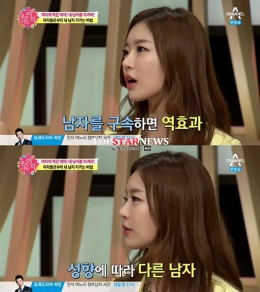 연애를 할 때 남자를 방생하는 편이라고 밝히며 “바람을 필 애라면 어떻게든 피게 된다. 안 피는 애는 알아서 안 핀다. 오히려 조금 놔주는 게 나은 거 같다”고 말했다.