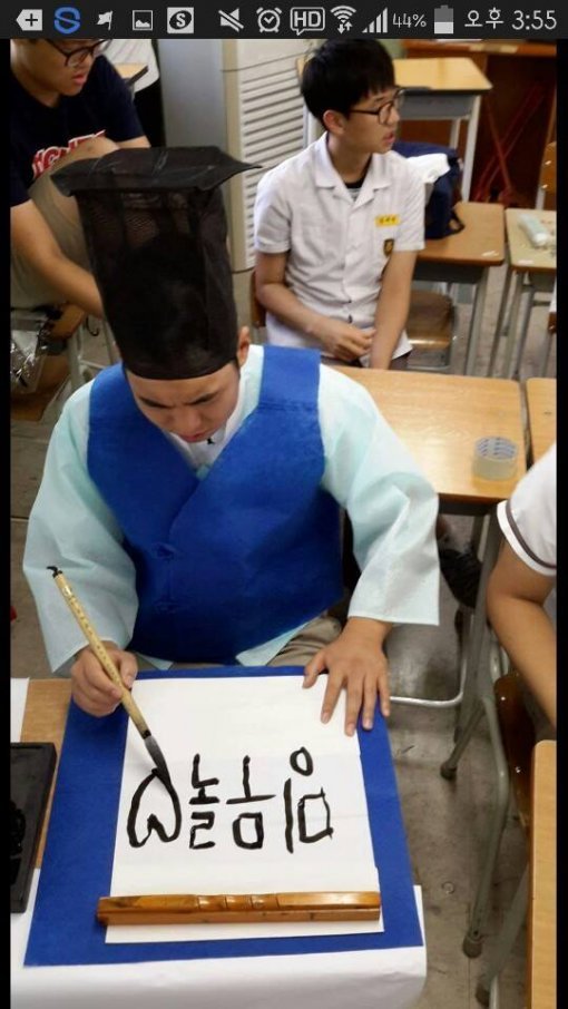 이 학생은 삼둥이가 서당을 방문했을 때 의상인 한복을 입고 붓으로 글씨를 쓰고 있다. 마치 장난을 치다 훈장님에게 혼난 민국이를 연상시키듯 화선지에 ‘밍무룩’이라고 적어 웃음을 자아낸다.
