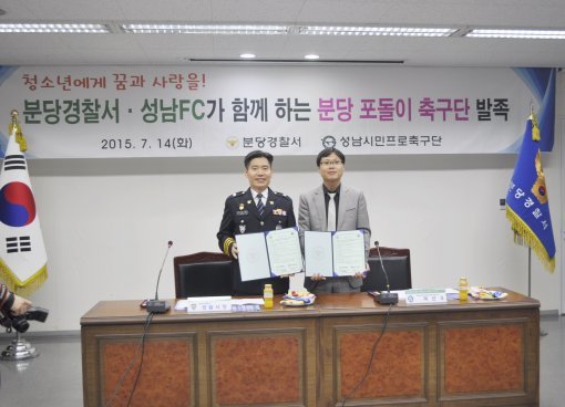 프로축구 성남FC가 분당경찰서와 업무협약을 체결하고 '분당포돌이 축구단'을 발족했다.