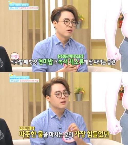 최근 노유민은 MBC '복면가왕'에 출연해 따뜻한 물과 상추 쌈으로 다이어트에 성공했다고 비법을 공개한 바 있다.