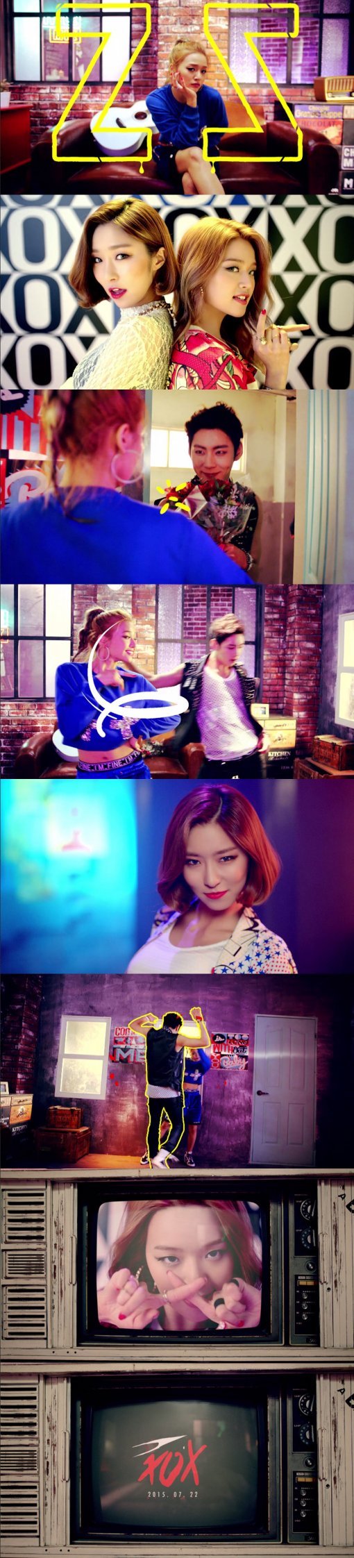 특히 이번 티저에는 달샤벳의 가은과 ‘댄싱9’의 히어로 한선천이 등장해 눈길을 끈다. 최근 ‘조커’로 활동하며 섹시한 매력을 어필했던 가은은 이번 ‘XOX’ 티저에서 타이트한 블라우스와 옆라인이 트인 치마를 입고 뇌쇄적인 눈빛으로 또 한 번 본연의 섹시미를 발산하고 있다.