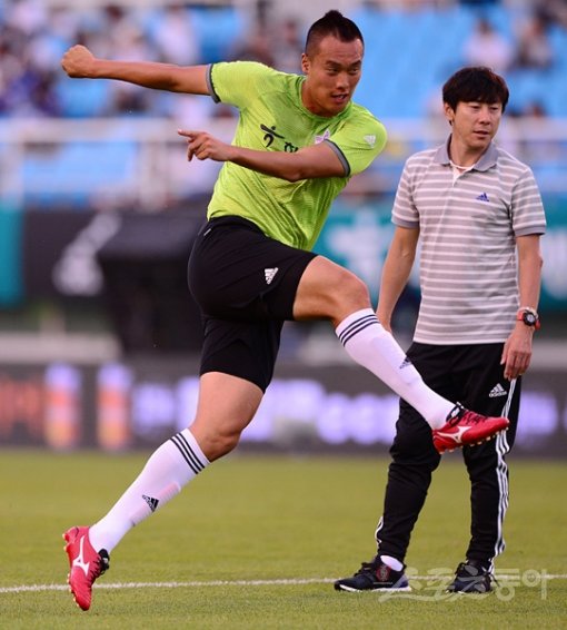 17일 경기도 안산 와스타디움에서 '팀 최강희'와 '팀 슈틸리케'의 ‘2015 하나은행 K리그 올스타전'이 열렸다. '팀 슈틸리케' 김신욱이 슈팅 훈련을 하고 있다.