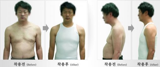 옷 맵시를 방해하는 남녀 공통의 적인 아랫배와 옆구리 살도 걱정 없다. 술과 비만으로 나온 아랫배와 숙여진 등허리는 밀고 당겨서 바짝 세워주며, 일자형 패턴으로 복부를 압박해 돌출된 배를 고르게 밀어 넣어 준다. 등쪽의 살은 X자 입체패턴이 빈틈 없이 잡아준다.