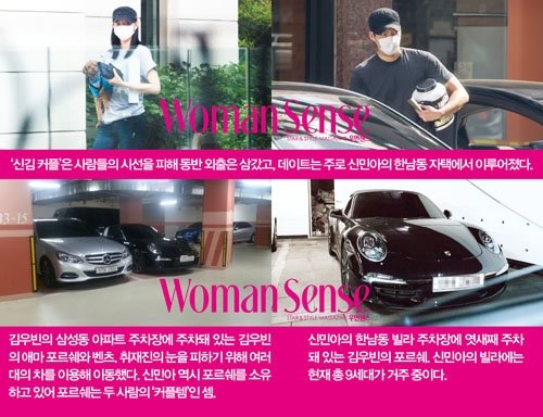 여성 매거진 우먼센스도 이날 8월호를 통해 신민아와 김우빈의 열애 소식을 알렸다. 우먼센스는 “두 사람의 데이트는 은밀하고 치밀했다”고 전했다. 지난 10일 포르쉐를 이용해 신민아의 집을 찾은 김우빈은 자신의 차를 집에 두고 몸만 빠져 나오는 방식으로 취재진의 눈을 피했다고 보도했다. 이후 스케줄은 세컨드 카인 벤츠를 이용해 움직인 것으로 알려졌다. 한 측근은 “두 사람이 신중한 성격이라 공개된 장소에서 데이트를 하지는 않지만 예쁘게 사랑을 키워가고 있다”고 귀띔했다.