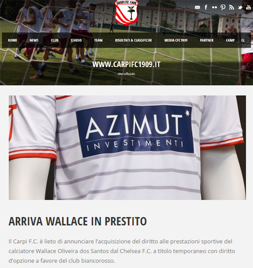 구단 역사상 처음으로 이탈리아 세리에A로 승격된 카르피 FC가 첼시의 풀백 유망주 왈라스 올리베이라(21)를 임대 영입했다.