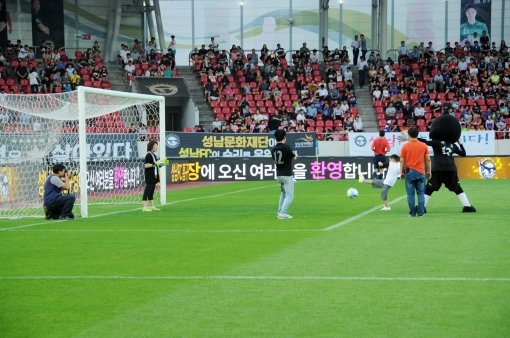 프로축구 K리그 클래식 성남FC가 22일 오후 7시 30분 탄천종합운동장에서 열린 울산과의 ‘2015 하나은행 FA컵’ 8강전에 앞서 특별한 시축을 진행했다.