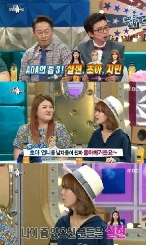 이날 ‘라디오스타’에서 지민은 “요즘 AOA의 TOP3가 설현, 초아, 지민이다. 세 명이 가장 인기가 많은데 본인이 생각하기에는 어떠냐”는 질문을 받았다.