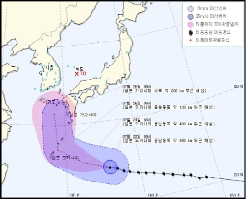 한편, 기상청에 따르면 12호 태풍 할롤라는 23일 현재 일본 오키나와 동남동쪽 약 840km부근 해상에서 매시 17km의 속도로 북서진하고 있다.