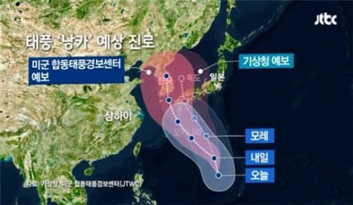 한국과 미국의 기상당국은 태풍 할롤라의 예상경로에 대해 서로 다른 예보를 내놨다.