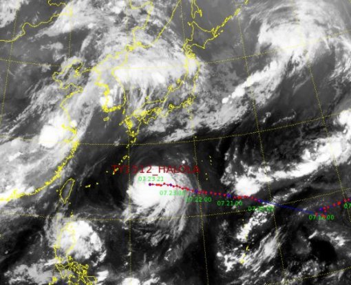 기상청에 따르면 12호 태풍 할롤라는 26일 오후 대한해협으로 진입해 저녁에 부산 쪽으로 상륙했다 동해로 빠져나가는 예상경로를 밟을 것으로 관측됐다.