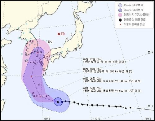기상청은 “북태평양 고기압이 확장하면서 태풍 할롤라가 현재 경로에서 전체적으로 약간 서쪽으로 더 진행하면서 26일부터 우리나라에 영향을 줄 것”으로 전망했다.