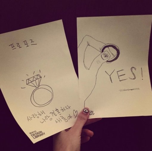 공개된 사진에는 반지 그림과 함께 ‘사랑해 나랑 결혼하자 새롬아’라는 글이 적혀 있으며, 다른 사진에는 ‘YES’라는 글이 적혀 있다.