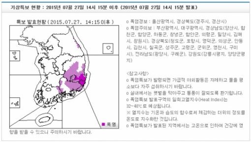 한편, 영남과 강원 동해안에 폭염주의보가 발효 중인 가운데, 낮 동안 전국이 무덥다.