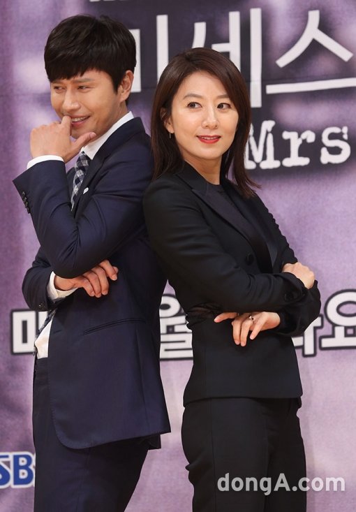 배우 김민종(왼쪽)과 이다희가 29일 오후 서울 양천구 목동 SBS방송센터에서 열린 드라마 ‘미세스 캅’ 제작발표회에 참석해 포토타임을 하고 있다.