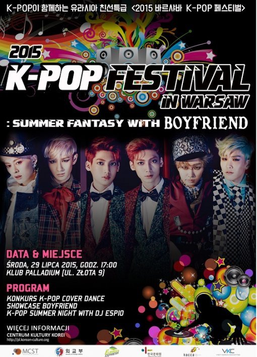 주폴란드 대사관 한국문화원이 주관하는 이번 행사는 폴란드 한류팬이 펼치는 K-Pop 경연대회부터 그룹 보이프렌드의 기념 공연, 전문 DJ가 진행하는 K-Pop Summer night까지 다양하게 구성됐다.