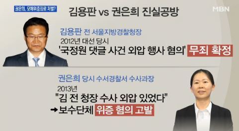 자유청년연합 등 시민단체는 권 의원이 김 전 청장의 재판에서 위증을 했다며 지난해 7월 권 의원을 고발했고, 권 의원은 1년 만에 검찰 조사를 받게 됐다.