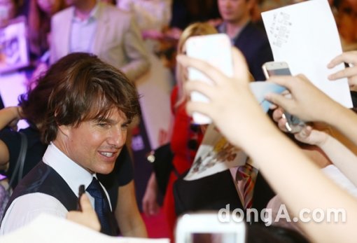 헐리우드 배우 톰 크루즈가 30일 오후 서울시 송파구 롯데월드몰에서 열린 영화 ‘미션 임파서블5’ 레드카펫 행사에 참석해 팬들과 만나고 있다.