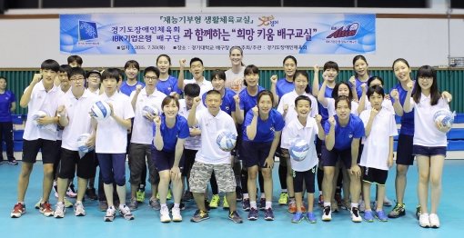 IBK기업은행 알토스 배구단이 30일 수원 경기대학교 체육관에서 경기도장애인체육회와 함께하는 희망 키움 배구교실을 열어 경기도 장애학생들에게 재능을 나누는 뜻 깊은 자리를 가졌다.