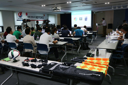 한국프로축구연맹 심판위원회(위원장 조영증)가 30일 축구회관 다목적회의실에서 2015 K리그 심판 운영과 상반기 판정 현황을 설명하는 ‘Talk about Referee’를 개최했다. 사진제공|한국프로축구연맹