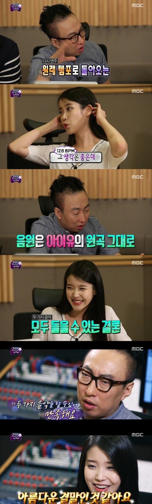 EDM 고집을 부리던 박명수와 서정적인 음악을 추구했던 아이유는 아이유의 녹음실에서 의견을 조율했다.