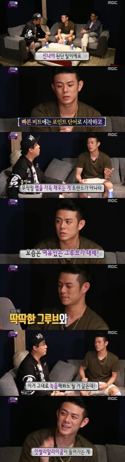 윤상이 만든 노래를 듣고 “음악이 되게 신나는 거니까 랩이 들어갔을 때도 신나야 한다. 빠른 비트에는 포인트 단어로 시작하고 후반부에는 본격적인 랩을 해야 한다. 그러면 세련된 느낌이 날 것이다”라고 조언했다.
