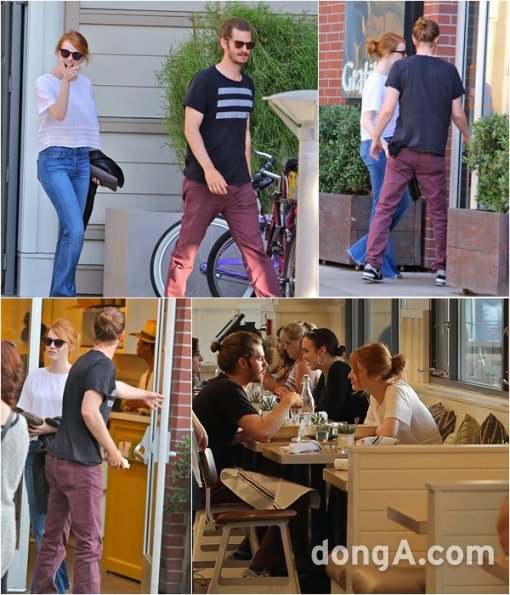 특히 엠마 스톤은 파파라치의 카메라를 보며 반갑게 손짓하는가 하면 앤드류 가필드는 여자친구에게 자상한 남자친구임을 드러냈다. 또 식당에서 마주 앉으며 음식을 먹는 두 사람은 사랑스러운 눈빛으로 서로를 바라보며 즐거운 시간을 보내는 모습이 카메라에 담겼다.