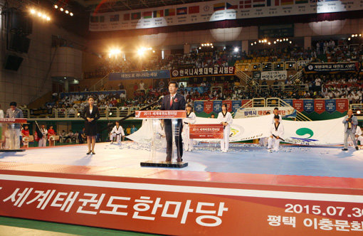 지구촌 태권도 가족들의 열기로 가득했던 ‘2015세계태권도한마당’이 2일 경기도 평택 이충문화체육센터에서 폐회식을 열고 나흘간의 대장정을 마무리했다. 정만순 국기원장은 “세계태권도한마당을 통해 모든 참가자가 하나 돼 태권도의 무한한 잠재력과 전 세계 태권도인의 우정을 확인했다”고 말했다.