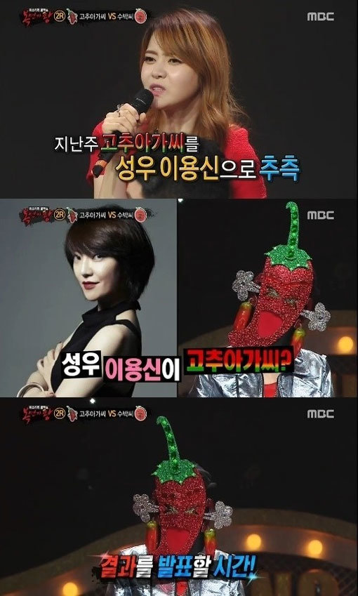 한편 복면가왕 고추아가씨의 정체로는 성우 이용신이 꼽히고 있다.