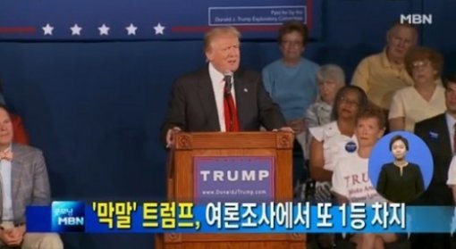 막말로 유명세를 떨치고 있는 미국 공화당 대선주자 도널드 트럼프가 여론조사서 또 1등을 차지했다.