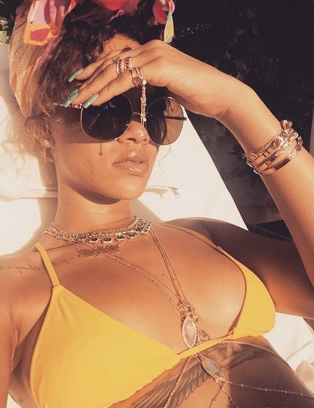 공개된 사진 속 리한나는 노란색 홀터넥 비키니로 육감 몸매를 가감없이 과시했다. 그녀의 아찔한 몸매가 눈길을 사로잡는다.