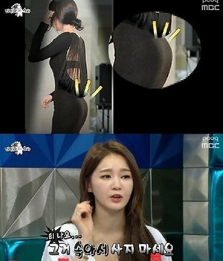 지난해 5월 방송된 MBC ‘황금어장 라디오스타’에서 강민경이 ‘엉뽕 굴욕사건’을 해명했다.