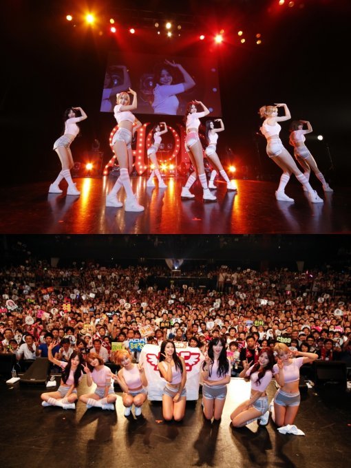 이날 AOA는 화려한 퍼포먼스와 재치있는 입담으로 관객들을 사로잡았다. 일본어 버전의 ‘심쿵해’로 팬클럽 창단식의 포문을 연 AOA는 ‘단발머리’ ‘사뿐사뿐’ ‘짧은 치마’ ‘흔들려’ ‘엘비스’ 등 총 6곡을 전부 일본어 라이브로 소화하며 팬들의 뜨거운 환호성을 받았다.
