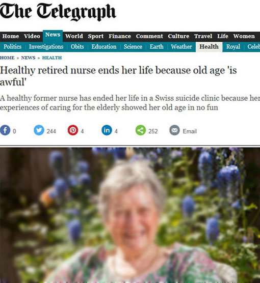 간호사 출신의 건강한 영국 70대 여성이 “늙는 것이 끔찍하다”며 안락사를 택했다.