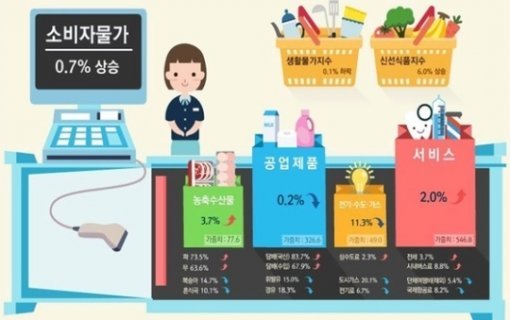 4일 통계청이 발표한 소비자물가동향에 따르면 7월 소비자물가지수는 전년동월대비 0.7%로 8개월째 0%대 상승률을 기록했다.