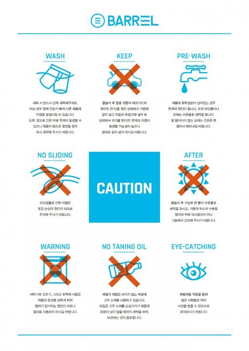 워터액션 스포츠웨어 대표 브랜드 배럴(www.getbarrel.com)은 홈페이지를 통해 자세한 세탁법에 대해 안내하고 있다.