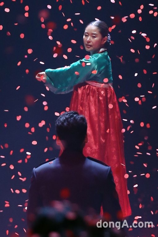 배우 예지원이 4일 오후 서울시 서초구 예술의 전당 CJ 토월극장에서 열린 연극 ‘홍도’ 프레스콜에서 공연을 하고 있다.