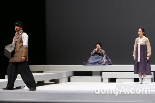 배우 양영미, 홍의준이 4일 오후 서울시 서초구 예술의 전당 CJ 토월극장에서 열린 연극 ‘홍도’ 프레스콜에서 공연을 하고 있다.