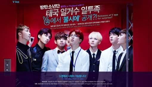 그룹 방탄소년단이 태국에서 네이버 V앱을 통해 해외 라이브 방송을 펼친다.